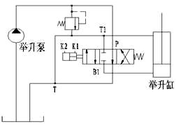 在舉升過程中,舉升泵輸入的液壓油全流量進(jìn)入舉升缸;在頂蓋開啟、關(guān)閉過程中,舉升泵輸入的液壓油經(jīng)過分流閥后,分流出一部分(30L/min)進(jìn)入頂蓋油缸,其余的液壓油流回油箱。