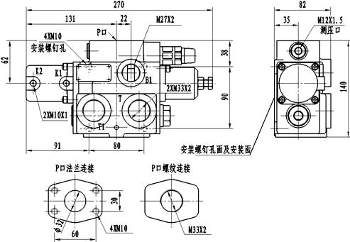 外形及安裝連接尺寸: