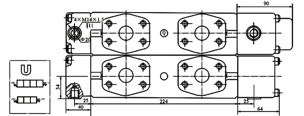 DC25多路換向閥液控操縱閥片有關(guān)尺寸: