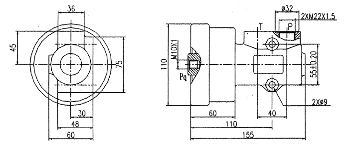 用途與特征: QF—L15型氣控舉升閥是我公司根據(jù)氣液控制系統(tǒng)而設(shè)計(jì)制造的氣動(dòng)控制換向閥,適用于重載自卸車液壓舉升系統(tǒng)。該閥先導(dǎo)控制部分以壓縮空氣為工作介質(zhì),通過(guò)氣缸動(dòng)作推動(dòng)主閥芯的開或閉,從而轉(zhuǎn)換工作機(jī)能,在液壓舉升系統(tǒng)中起接通或卸荷作用,實(shí)現(xiàn)自卸汽車車箱的舉升和下降。 工作原理: QF—L15型氣控舉升閥的原始位置P口與T口是連通的(常開式結(jié)構(gòu))。該閥工作時(shí),利用壓縮空氣通過(guò)氣缸推動(dòng)閥芯封閉,油路由常通位置轉(zhuǎn)為工作位置,即實(shí)現(xiàn)車廂的舉升;當(dāng)壓力超過(guò)溢流閥調(diào)定壓力時(shí),P口端壓力油克服彈簧推力,使P口與T口接通油液流入油箱。切斷氣源,系統(tǒng)卸荷車廂下降。該閥的工作原理示意圖如下。 技術(shù)參數(shù)/工作油液: 1.工作壓力:16 MPa 2.工作流量:100 L/min 3.控制氣壓.0.4—0.8 MPa 4.溫度范圍:-20一+80(C°) 5.粘度范圍:10~400 (mm2/S) 6.過(guò)慮精度:≤10 (μm) 注:油液最高污染等級(jí)按GB/T14039之19/16執(zhí)行。 型號(hào)說(shuō)明: