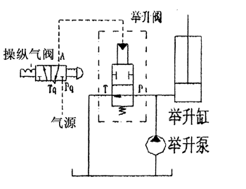 OJF—E15(20)L型氣控舉升閥的原始位置P口與T口是連通的(常開(kāi)式結(jié)構(gòu))。該閥工作時(shí),利用壓縮空氣通過(guò)氣缸推動(dòng)閥芯封閉,油路由常通位置轉(zhuǎn)為工作位置,即實(shí)現(xiàn)車(chē)廂的舉升;切斷氣源P口與T口接通油液流入油箱,系統(tǒng)卸荷車(chē)廂下降。該閥的工作原理示意圖如下!